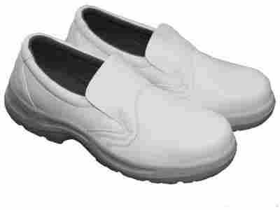 - podeszwa wykonana z podwójnego poliuretanu, olejoodporna i kwasoodporna, w kolorze białym, absorpcja uderzeń pod piętą