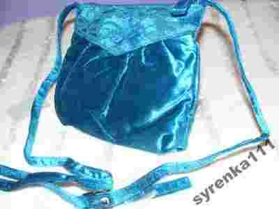 Wyprzedaż torebek NOWE-turkus aksamitka z koronka