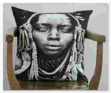 Wyrazista poduszka ozdobna z czarnoskórą kobietą