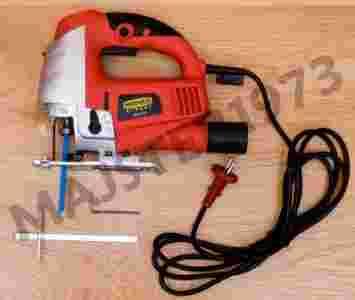Opis: Wyrzynarka przeznaczona jest do zastosowań domowych i półprofesionalnych. Jest dobrym narzędziem dla majsterkowicza. Korpus wykonany jest z wytrzymałego tworzywa, posiada gumowaną antypoślizgową rękojeść i wygodny w użyciu uchwyt - mocowanie (bezkluczykowe) do brzeszczotów typu T. Wyrzynarka posiada regulację prędkości obrotowej, regulację kąta nachylenia brzeszczotu, regulację konta pochylenia wyrzynarki, laser do wyznaczania lini prostej i prowadnicę dystansową z podziałką. Praktyczna walizka pozwala na łatwe przenoszenie i przechowywanie sprzętu. Dodatkową zaletą jest fakt, iż urządzenie jest również wyposażone w dodatkowy komplet szczotek do silnika.