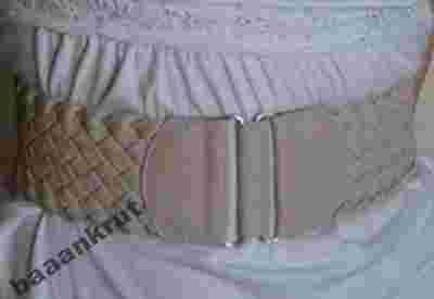 PAS WYKONANY Z BEŻOWEJ EKOLOGICZNEJ SKÓRY Z ROZCIĄGLIWĄ WSTAWKĄ; PIĘKNIE PLECIONY CO DODAJE MU NIEPOWTARZALNEGO UROKU;