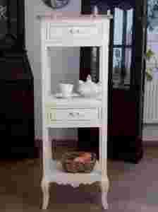 Wysoka konsolka w stylu rustykalnym, Shabby Chic. Dwi szuflady, dwie półki.
