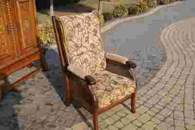 Stan mebli widoczny na zdjęciach, konstrukcja stabilna. Niewielkie ślady użytkowania. Wymiary fotela: