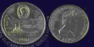 Wyspa św. Heleny (Anglia) 25 Pence 1980 Statek BCM
