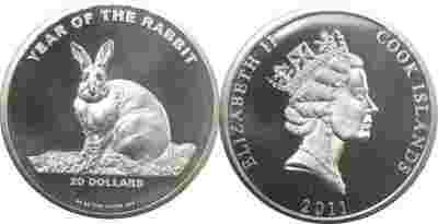 WYSPA COOKA 20 DOLARÓW 2011 ROK KRÓLIKA 20 UNCJI