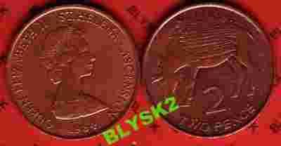 WYSPY ŚW.HELENY/KM-2/ 2 PENCE 1984 r. OSIOŁ