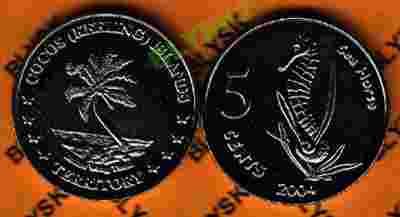 WYSPY KOKOSOWE 5 CENTS 2004 r.Konik morski RRR