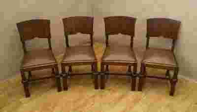 Z ogromną przyjemnością zapraszam do licytacji wspaniałego przedmiotu jakim jest elegancki zestaw 4 krzeseł art deco. Wykonane są one z drewna pokrytego pięknym fornirem. Posiadają oparcia o delikatnie łukowatym kształcie. Siedziska wyłożone tapicerką w kolorze brązowym, są one na sprężynach.