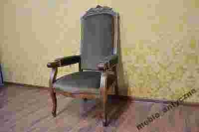 Elegancki fotel w stylu Ludwikowskim.Kraj pochodzenia Francja,wiek ok 60lat. Wykonany z drewna orzechowego, pięknie rzeźbionego, siedzisko na sprężynach, materiał obiciowy welurowy Fotel wygodny stabilny. Fotel charakteryzuję się niebywałą elegancją. Stan Mebla bardzo dobry.