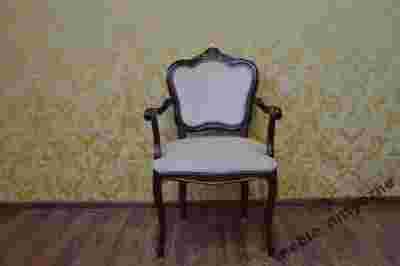 Elegancki fotel w stylu Ludwikowskim. Wykonany z drewna orzechowego, pięknie rzeźbionego, siedzisko na sprężynach, materiał obiciowy welurowy Fotel wygodny stabilny. Fotel charakteryzuję się niebywałą elegancją. Stan Mebla idealny.