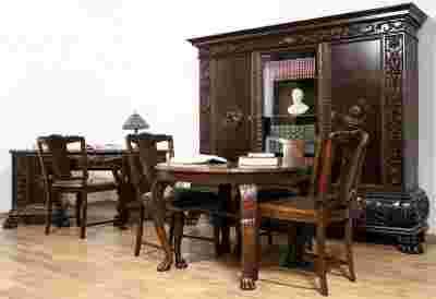Tron i krzesła posiadają ażurowe oparcia