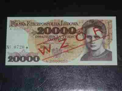 WZÓR 20000 ZŁ STAN I UNC SUPER NUMER 720!!!!!!!!!