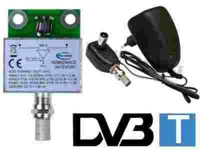 WZMACNIACZ antenowy DVB + zasilacz na wtyk F 150km