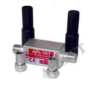 Nowoczesny wzmacniacz antenowy APL-107M służy do wzmacniania słabych sygnałów TV naziemnej analogowej i cyfrowej w standardzie DVB-T MPEG-4. Wzmacniacz szerokopasmowy APL-107M przeznaczony jest do wzmacniania słabych sygnałów TV, pochodzących z anten wyposażonych w symetryzator umieszczony w puszce antenowej. Zastosowany w wyżej wymienionym wzmacniaczu nowoczesny układ elektroniczny oparty na dwustopniowym wzmocnieniu daje mu aż 23dB wzmocnienia w całym paśmie VHF/UHF (od 1-69 kanału TV). Zamknięcie całego układu elektronicznego wzamacniacza w obudowie ze znolu daje nam ekranowanie, które zapewnia stabilną pracę wzmacniacza i przeciwdziała wpadaniu niepożądanych zakłóceń typu (sieci WIFI, radio CB, telefonia komórkowa). Wzmacniacz przystosowany jest do pracy w otwartej przestrzeni oraz w pomieszczeniach zamkniętych.