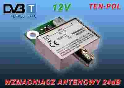 Model: WE-24 Zakres częstotliwości: 174 - 862 M Wzmocnienie: 25dB Poziom wyjściowy: 98 dB uV Poziom szumów: ~3-3,5 dB Zasilanie: 12V Pobór prądu: < 50 mA