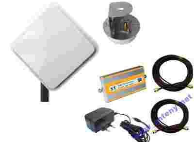 W zestawie antena zewnętrzna o zysku 17 dBi pracująca w polaryzacji skośnej co sprawia iż wzmacniacz nie wymaga 2 szt anten dla toru RX-TX oraz jedna antenę wewnętrzną do montażu na suficie lub ścianie, dzięki której wzmacniacz będzie bardziej wydajny a zasięg bardziej stabilny.