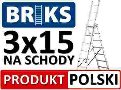 WZMACNIANA DRABINA ALUMINIOWA BRIKS 3x15+HAK 12,2m