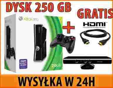 XBOX 360 250GB +KINECT +PAD +20 GIER+HDMI - WYS24h