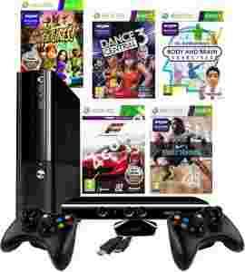 NAJNOWSZA KONSOLA XBOX 360 SLIM E 4GB + HDMI + 2x PAD + KINECT + KINECT ADVENTURES PL+ DANCE CENTRAL 3 PL + FORZA 4 ESSENTIALS PL + KINECT NIKE + DR. KAWASHIMA'S