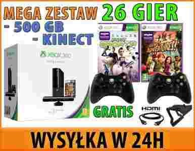 Specjalne wydanie nowej konsoli Xbox 360 500 GB z technologią Kinect sprawia, że gry i rozrywka stają się niezwykle realistyczne — bez użycia kontrolera. Ma ona wbudowany moduł Wi-Fi, czarny kontroler bezprzewodowy, kabel kompozytowy A/V (dla standardowej rozdzielczości).