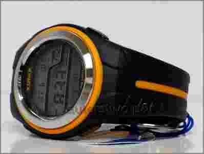Koperta w kolorze czarnym z metalową wstawką oraz pomarańczowym relingiem . Wyświetlacz posiada duże cyfry , dodatkowo podświetlane w kolorze morskim ( patrz ostatnie zdjęcie ) . Pasek w kolorze czarnym matowym z pomarańczowymi wstawkami , wykonany z wysokiej jakości latexu . Zegarek jest wodoszczelny , można się z nim kąpać lub zabierać na basen . Model jest wyposażony w wiele ciekawych funkcji które przydadzą się małemu sportowcowi w szkole , na basenie , na treningu oraz zawsze będzie wiedział o której godzinie ma wrócić do domu , ponieważ można ustawić jednorazowy alarm .