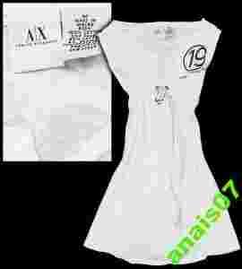 NA TEJ AUKCJI SPRZEDAŻY PODLEGA TOP ARMANI EXCHANGE , WSZYSTKIE METKI Z NUMERAMI SERYJNYMI , PRZEWIEWNA BAWEŁNA W BIELI , CIEKAWE NADRUKI W CZERNI , Z PRZODU TASIEMKA DO WYWIĄZANIA , ROZMIAR Z METKI M , POWINIEN PASOWAĆ NA XS/S