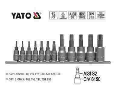 Przedmiotem aukcji jest profesjonalny komplet 12 kluczy trzpieniowych Torx security T8-T55marki YATO, w katalogu oznaczony numerem YT-0431.