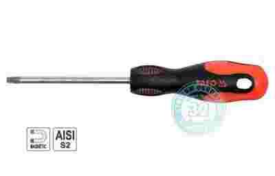 Profesjonalny torx z magnetyczną końcówką do prac w serwisach, warsztatach, na liniach montażowych, wykonane ze stali narzędziowej chromowo molibdenowej. Dwukomponentowa, ergonomiczna rękojeść o przekroju trójkątnym. Utwardzane powierzchniowo końcówki. Strefy zwiększające moment odkręcania. Magnetyczna końcówka grota.