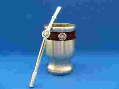 Piękna bombilla wykonana z brązu - dodatkowo kąpana w srebrze. Idealnie wyprofilowana , posiada bardzo dobry filtr - nadający się do każdego rodzaju matera! Subtelnie zdobiona, zakrzywiona i rozkręcana co umożliwia czyszczenie specjalną szczoteczką.