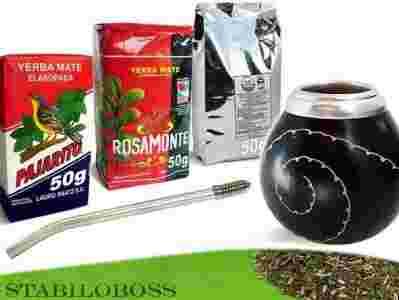 Trzy gatunki yerba mate z Paragwaju, Argentyny i Brazylii w porcjach po 50 gramów oraz naczynie z tykwy i bombilla (rurka do picia). Idealny zestaw na testową przygodę z yerba mate!