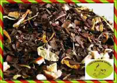 Suszone liście ostrokrzewu paragwajskiego z dodatkiem skórki pomarańczy i płatki nagietka o pomarańczowym aromacie.