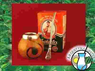 Tykwa [103] - oryginalne argentyńskie naczynie do parzenia Yerba Mate w tradycyjny sposób, wykonane z wydrążonego owocu tykwy - rośliny, należącej do rodziny dyniowatych. Wykończone metalowym zdobieniem. Tykwy różnią się pojemnością - mają pojemność od 100 do 250 ml. Wysyłamy o takiej pojemności, aby pasowała do nich załączona bombilla.