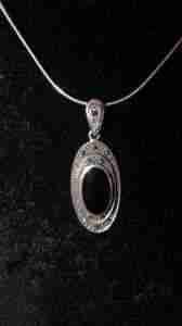 YES-ŚLICZNY ŁAŃCUSZEK Z WISIORKIEM ONYKS,SREBRO