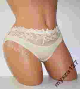Przedmiotem aukcji są bawełniane figi z piękna koronkową wstawką z przodu majteczek.