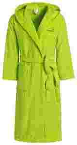 Praktyczny szlafrok z kapturem w modnym zielonym kolorze. Z przodu naszyte kieszenie. Uszyty z miękkiej bawełny co daje komfort noszenia. Mozna prać w pralce.