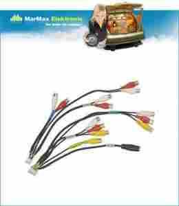 Posiada następujące wyjścia/wejścia RCA: SUBOOFER (L+P), FRONT (L+P), REAR (L+P), AUX-IN (L+P+video), AUX-OUT (L+P+video), CAMERA IN; gdniazdo DIN: S-IN