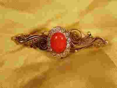 Do sprzedania mam ZŁOTĄ BROSZKĘ Z NATURALNYM KORALEM I BRYLANTAMI . BROSZKA WYKONANA JEST ZE ZŁOTA PRÓBY 585 . WAGA BROSZKI WYNOSI 3,83 GRAMA , DŁUGOŚĆ - 4,8 CM , SZEROKOŚĆ - 1,5 CM . MASA BRYLANTÓW WYNOSI ŁĄCZNIE OKOŁO 0,14 CT . BROSZKA POSIADA CERTYFIKAT . W JEDNYM MIEJSCU BROSZKA JEST MINIMALNIE USZKODZONA - ZOBACZ ZDJĘCIA . USZKODZENIE TO MOŻNA OCZYWIŚCIE NAPRAWIĆ , NIE WPŁYWA ONO NA WYGLĄD BROSZKI , PONIEWAŻ W TRAKCIE NOSZENIA JEST NIEWIDOCZNE . ZAPRASZAM PAŃSTWA DO DOKŁADNEGO OBEJRZENIA ZDJĘĆ I DO LICYTACJI .