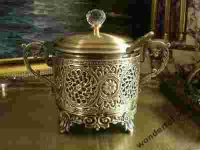 ZŁOTA PIĘKNA CUKIERNICA Z ŁYŻECZKĄ POKRYWKA SZKŁO