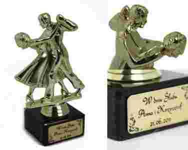 Statuetka umieszczone są na marmurowym postumencie z grawerowanymi laserowo napisami.