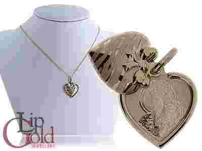 Oryginalny wisiorek w postaci serduszka- dwa w jednym. Składa się z dwóch ruchomych części- dwóch serduszek, na jednym z nich znajduje się wizerunk Matki Bożej trzymającej na swych rękach syna Jezusa Chrystusa. Zawieszka wykonana jest w całości z klasycznego złota pr.0,585.