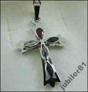 ZŁOTY KRZYŻYK RUBINY, SZAFIRY 1,570 g