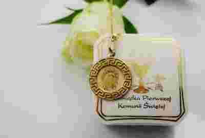 ZŁOTY MEDALIK ŁAŃCUSZEK KOMUNIA CHRZEST ROCZEK