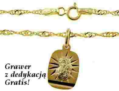 Złoty medalik + łańcuszek, M.B. Częstochowska pr. 585 (14 karat)