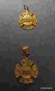Złoty pamiątkowy znaczek F.D.N.Y. - straż pożarna - USA XX w. Znaczki takie dostawali pracownicy federalni z Nowego Yorku z okazji rocznicy lub przy przejściu na emeryturę. Złoto 14 ct. ok.15 mm.AUKCJA DOTYCZY MNIEJSZEGO ZNACZKA - waga 3 g.Większy znaczek 3,2 g. Posiadamy wiele ciekawych złotych znaczków i odznaczeń.