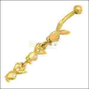 ZŁOTY PIERCING KOLCZYK DO PĘPKA Z CYRKONIĄ KRÓLICZKI