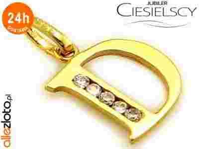 ZŁOTY WISIOREK LITERKA D Z CYRKONIAMI