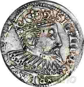 Z III Waza, trojak Ryga 1600, rzadki rok R1, st. 2