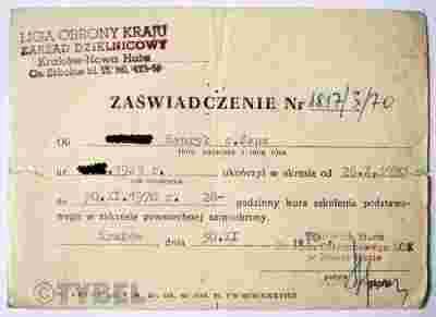 Zaświadczenie Liga Obrony Kraju Nowa Huta LOK !!!