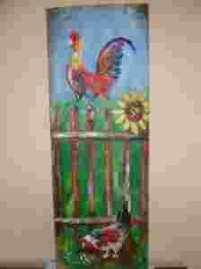za płotem na starej desce --akryl