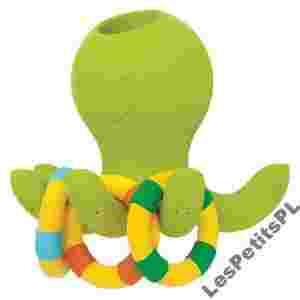 SKIP HOP Octopus to fantastyczna zabawka kąpielowa, która sprawi mnóstwo radości dużym i małym. Zestaw składa się z gumowej, miękkiej ośmiorniczki oraz 3 kolorowych kółeczek. Zabawa z ośmiorniczką różni się od tych, które znamy. Do główki ośmiroczniki można wlać wodę i obserwować jak śmiesznie wylatuje ona “paluszkami” zwierzątka tworząc maleńkie wodospady. Z ośmiorniczką można się również bawić w rzuty do celu – próbując zawiesić z bliska bądź daleka kolorowe kółeczka na jej ramionach.